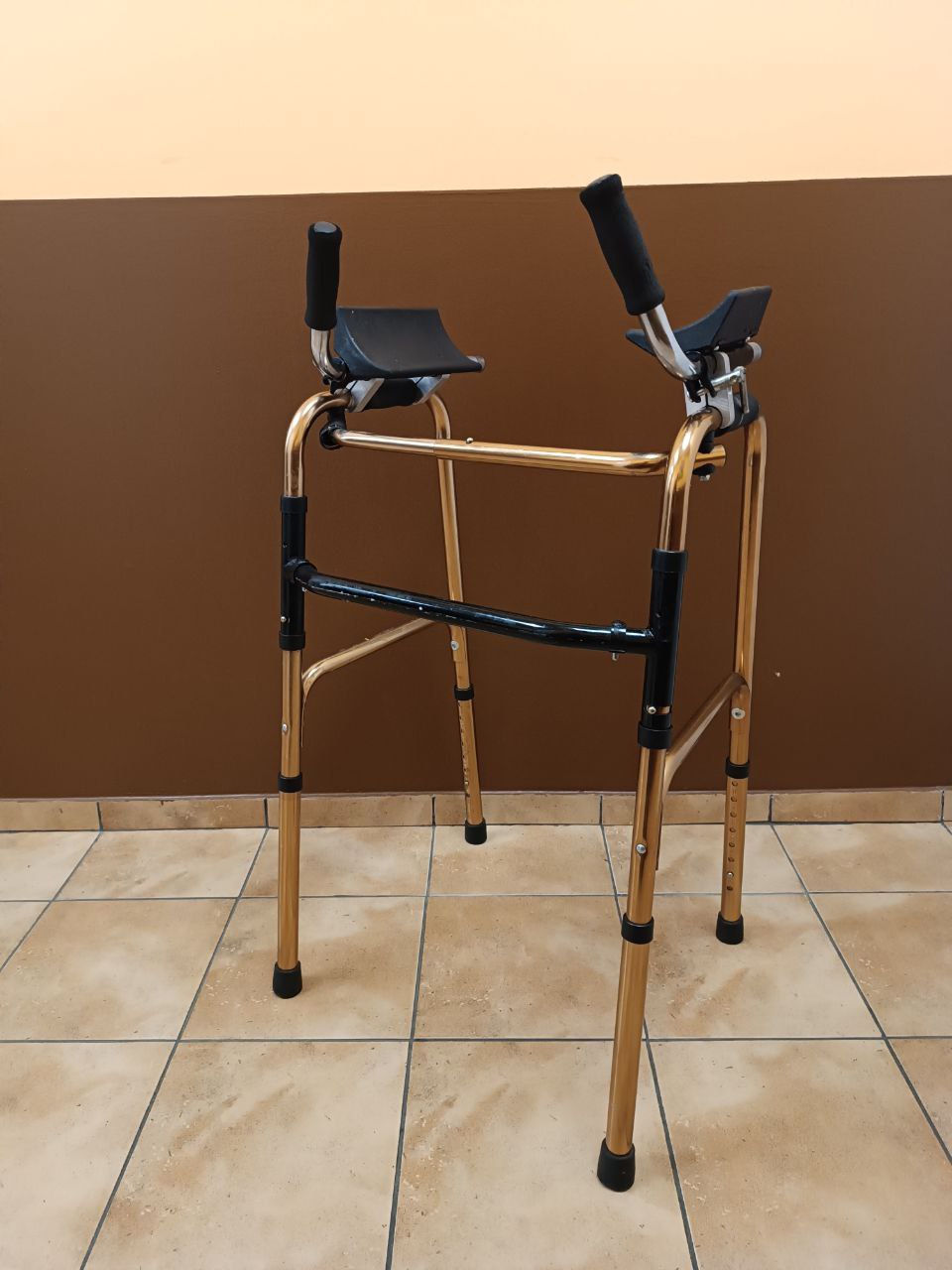 Ходунки шагающий с опорой под локоть удобны для тех кому тяжело держать спину прямо. Благодаря специальным подставкам человек полностью опирает локоть на ходунки.