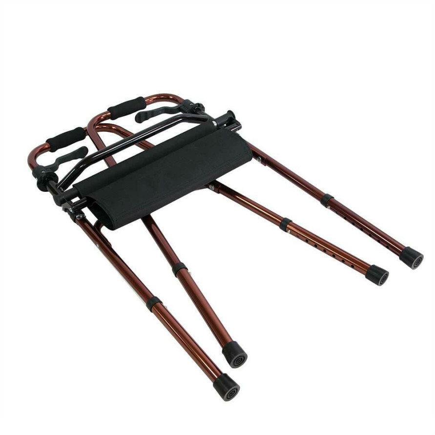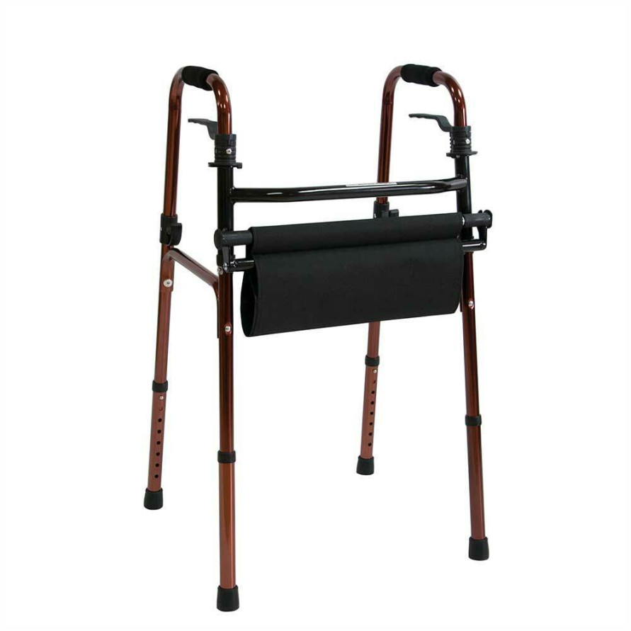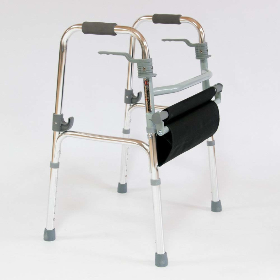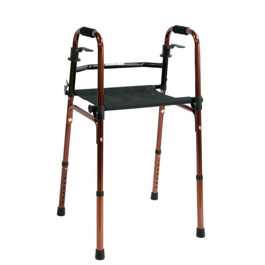 Алюминиевые ходунки серебрено-бронзового цвета 74-92 см высотой. Складываются. Встроенная конструкция сиденье, что позволяет использовать ходунки как сиденье.