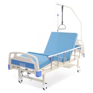 MET DM-370 – функциональная медицинская кровать для лежачих больных с четырьмя регулируемыми секциями и простыми винтовыми регулировками ложа. Независимые механические (червячные) регулировки изголовья и ножных секций – регуляторы положения ложа расположены в ножной части кровати для удобства медперсонала. Боковые ограждения выполнены из алюминия и легко опускаются, обеспечивая быстрый доступ к пациенту. Колеса из немаркой резины установлены в основаниях из высокопрочной стали – дополнены тормозами-фиксаторами и широкими противопылевыми колпаками.