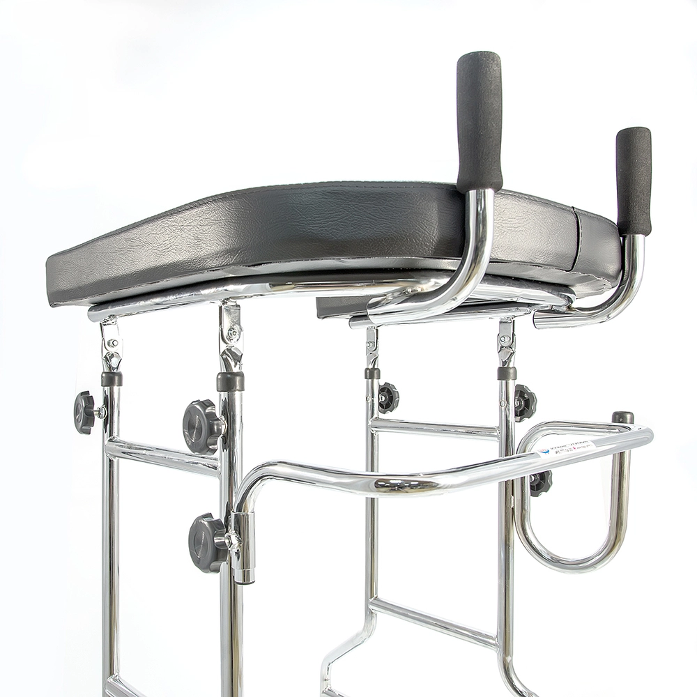 Ходунки предназначены для людей с инвалидностью, пожилых людей и больных, проходящих реабилитацию. Позволяют сохранять равновесие, улучшают координацию движений и уменьшают нагрузку на ноги. Модель оснащена U-образной подлокотной опорой, которая позволяет ставить на нее локти и предплечья, тем самым снимая нагрузку с мышц и суставов ног. Конструкция ходунков разборная, выполнена из хромированной стали, сиденье и подлокотная опора – из искусственной кожи. Четыре колеса конструкции обеспечивают легкость передвижения без лишних усилий. Задние колеса оснащены стояночными тормозами.