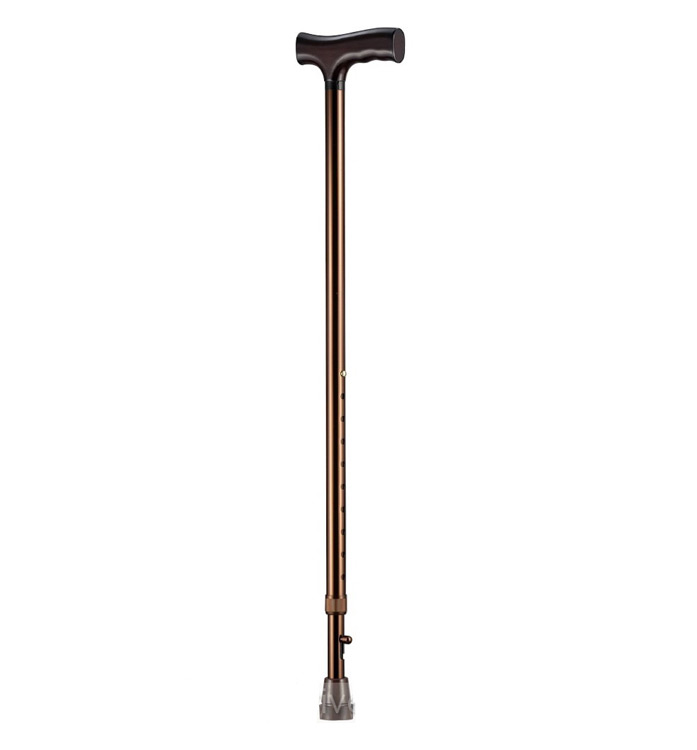 Металлическая трость коричневого цвета 76-100 см. Анатомическая нескользящая ручка. Встроенное устройство против скольжения. Съемные нескользящие резиновые насадки.