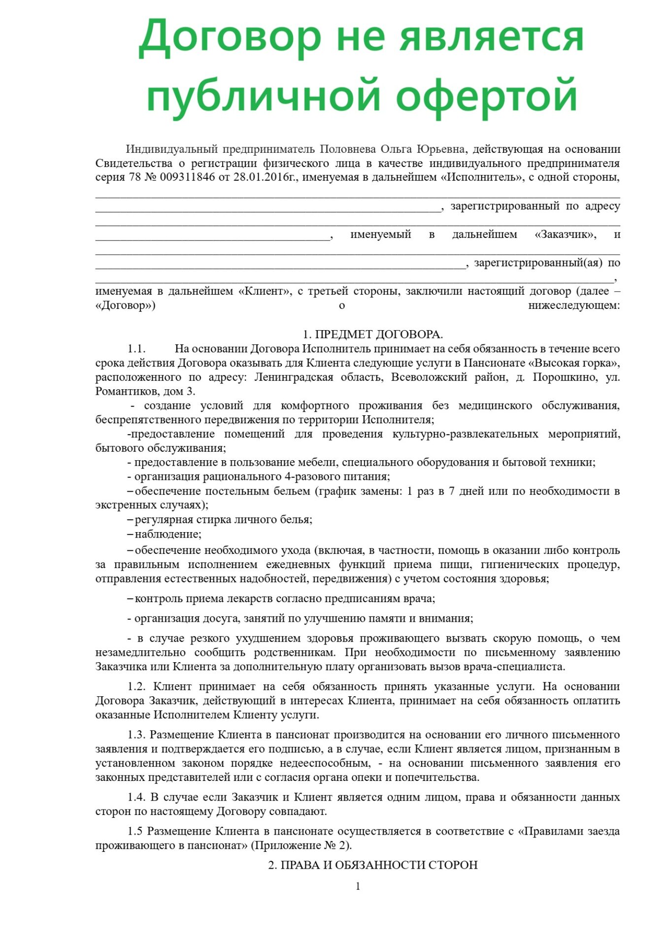Заключаем договор на